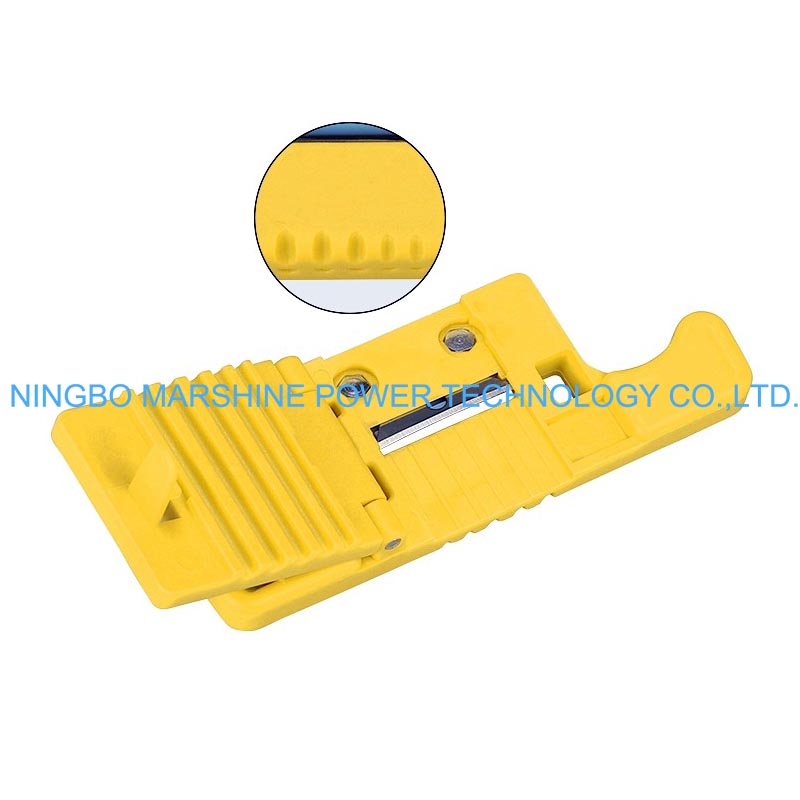 मार्शाइन केबल लॉन्गिट्यूडिनल ग्रिप फाइबर केबल स्ट्रिपिंग टूल केबल स्लिटर की संरचना स्ट्रिपिंग करते समय केबल को कसकर पकड़ने, फिसलने से बचाने और ऑपरेशन को अधिक सुरक्षित बनाने में सक्षम बनाती है।