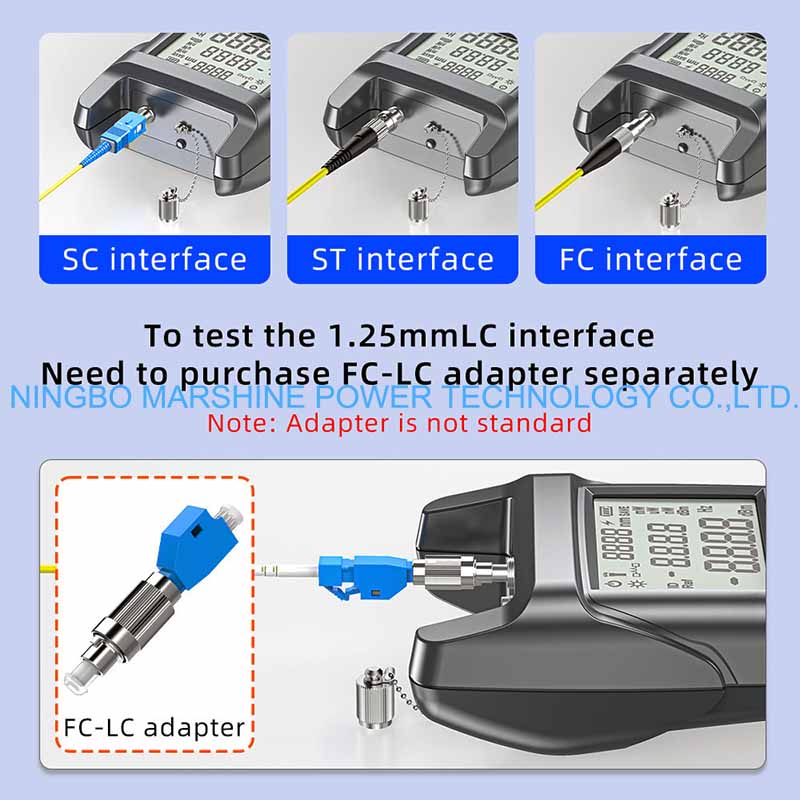 मार्शाइन फाइबर ऑप्टिकल ट्रबलशूट टूल पावर मीटर ओपीएम टेस्टर का उपयोग फाइबर नेटवर्क के सभी मानक ऑप्टिकल तरंग दैर्ध्य (जैसे 850 एनएम, 1310 एनएम, 1490 एनएम और 1550 एनएम) पर परीक्षण के लिए किया जा सकता है, जो मल्टी-मोड और सिंगल-मोड दोनों पर लागू होता है।